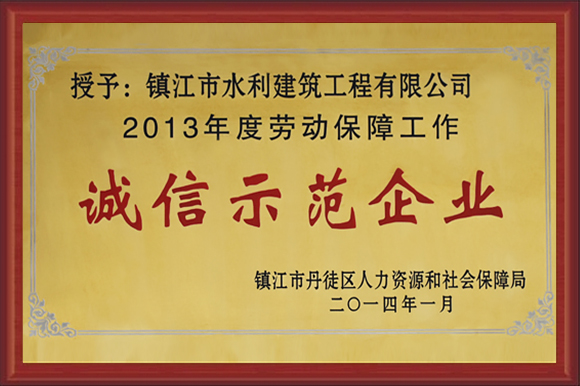 公司被評為重合同守信用企業、江蘇省水利安全生產標準化二級單位、AAA級資信企業、誠信示范企業、全國工程建設用戶滿意施工企業。